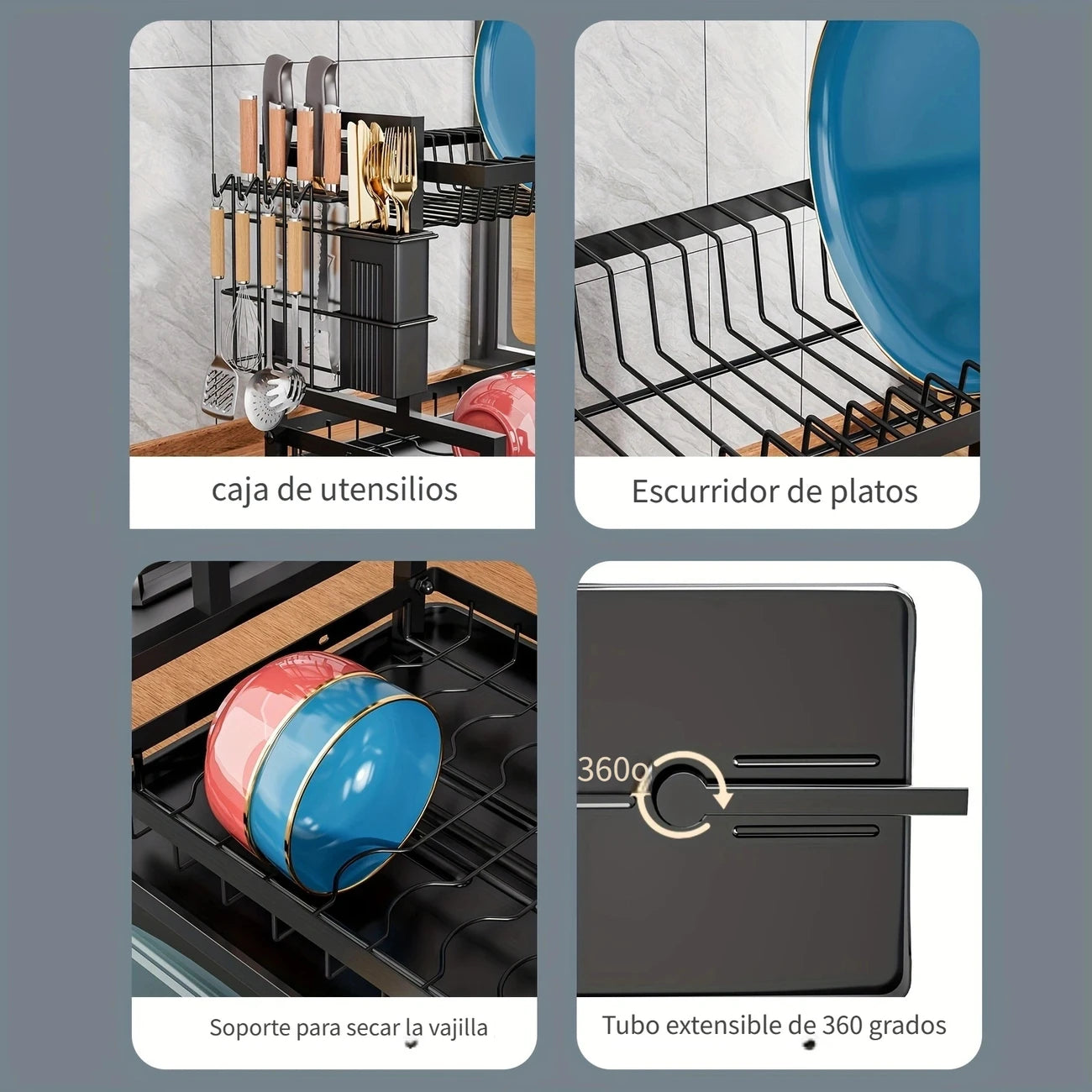 Nuestro escurridor de platos evita la acumulación de agua y humedad, impidiendo la formación de moho, hongos y malos olores. 🦠