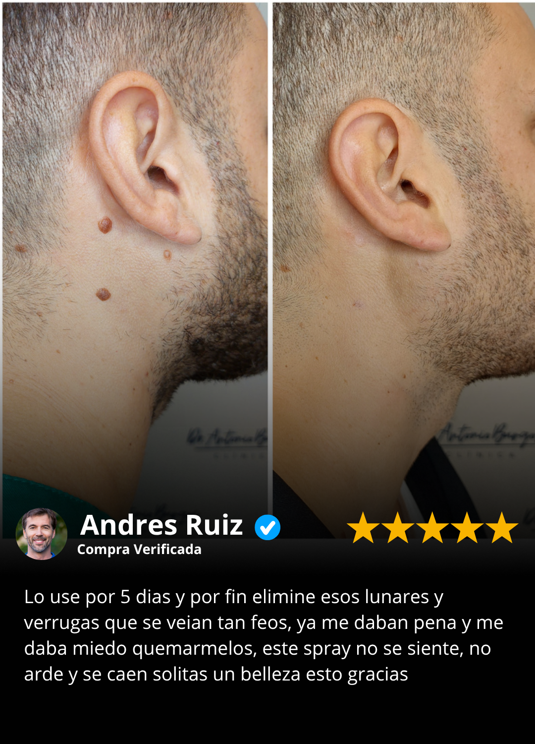 Él es Jairo Rubio, uso nuestro spray durante 1 semana y sus verrugas y lunares se cayeron sin dolor y sin cicatrices